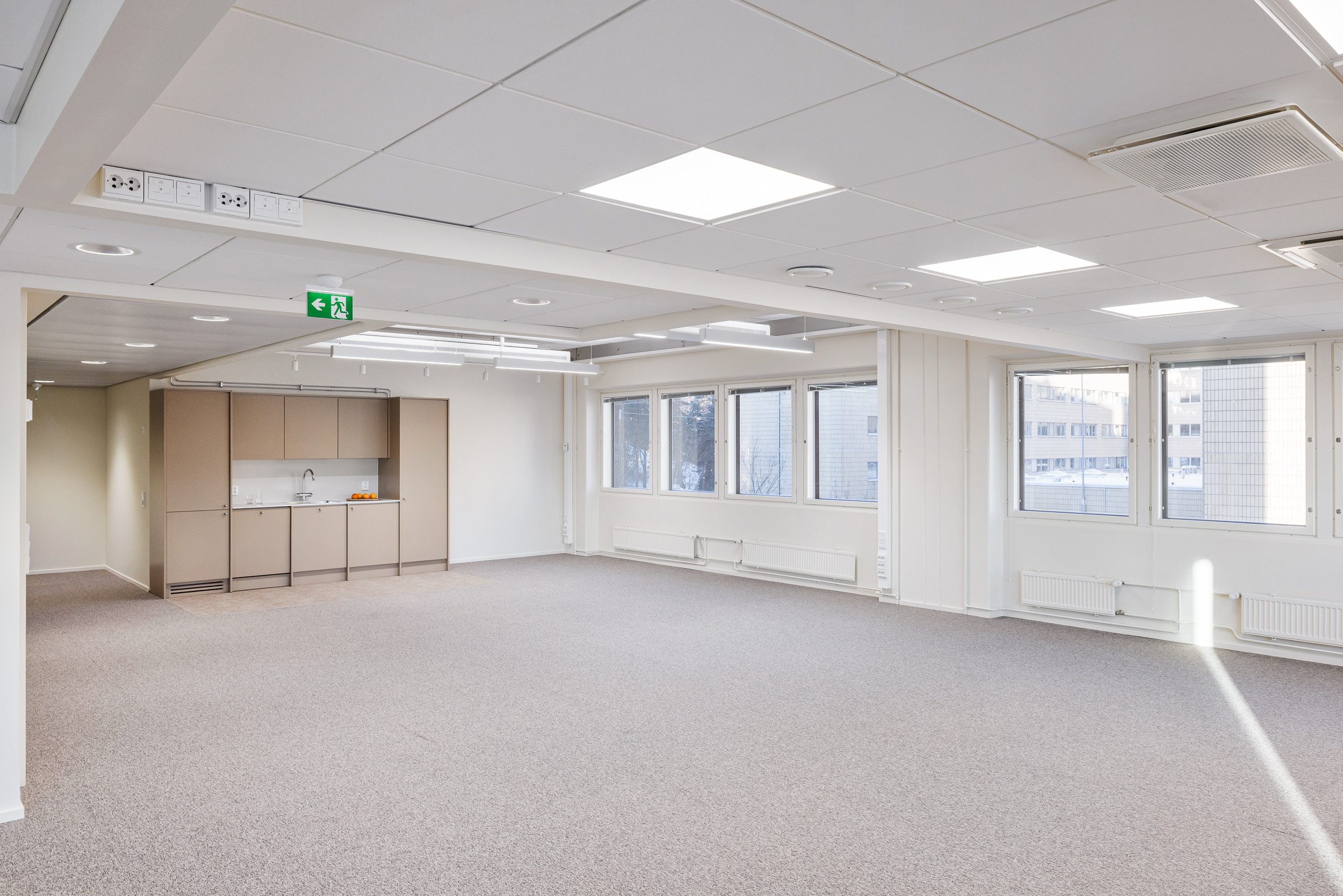 Tarjolla juuri valmistunut täysin uudistettu 158 m²:n tila kiinteistön kolmannessa kerroksessa. Tilassa on uusi upea avokeittiö ja tila on tällä hetkellä kokonaan avonaista yhtenäistä työskentelytilaa, joten tilaan voidaan rakentaa neuvotteluhuoneet ja työskentelytilat tarpeiden mukaisesti.