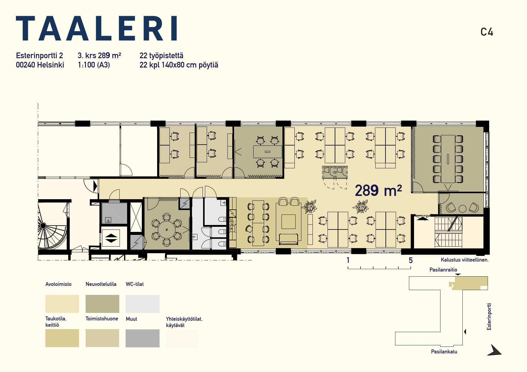 Tarjolla juuri valmistunut täysin uudistettu 289 m²:n tila kiinteistön kolmannessa kerroksessa. Tilasta löytyy avonaista työskentelytilaa, uusi upea avokeittiö sekä pienempiä työskentelytiloja ja neuvotteluhuone.